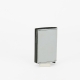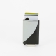 Upgecycelter Aluminium-Cardprotector, den die Qualitätskontrolle zwar für funktional perfekt, aber aufgrund kleiner oberflächlicher Mängel nicht für schön genug befunden und ihm deshalb ein Asphalt-Laser-Design verpasst hat