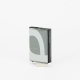 Upgecycelter Aluminium-Cardprotector, den die Qualitätskontrolle zwar für funktional perfekt, aber aufgrund kleiner oberflächlicher Mängel nicht für schön genug befunden und ihm deshalb ein Asphalt-Laser-Design verpasst hat