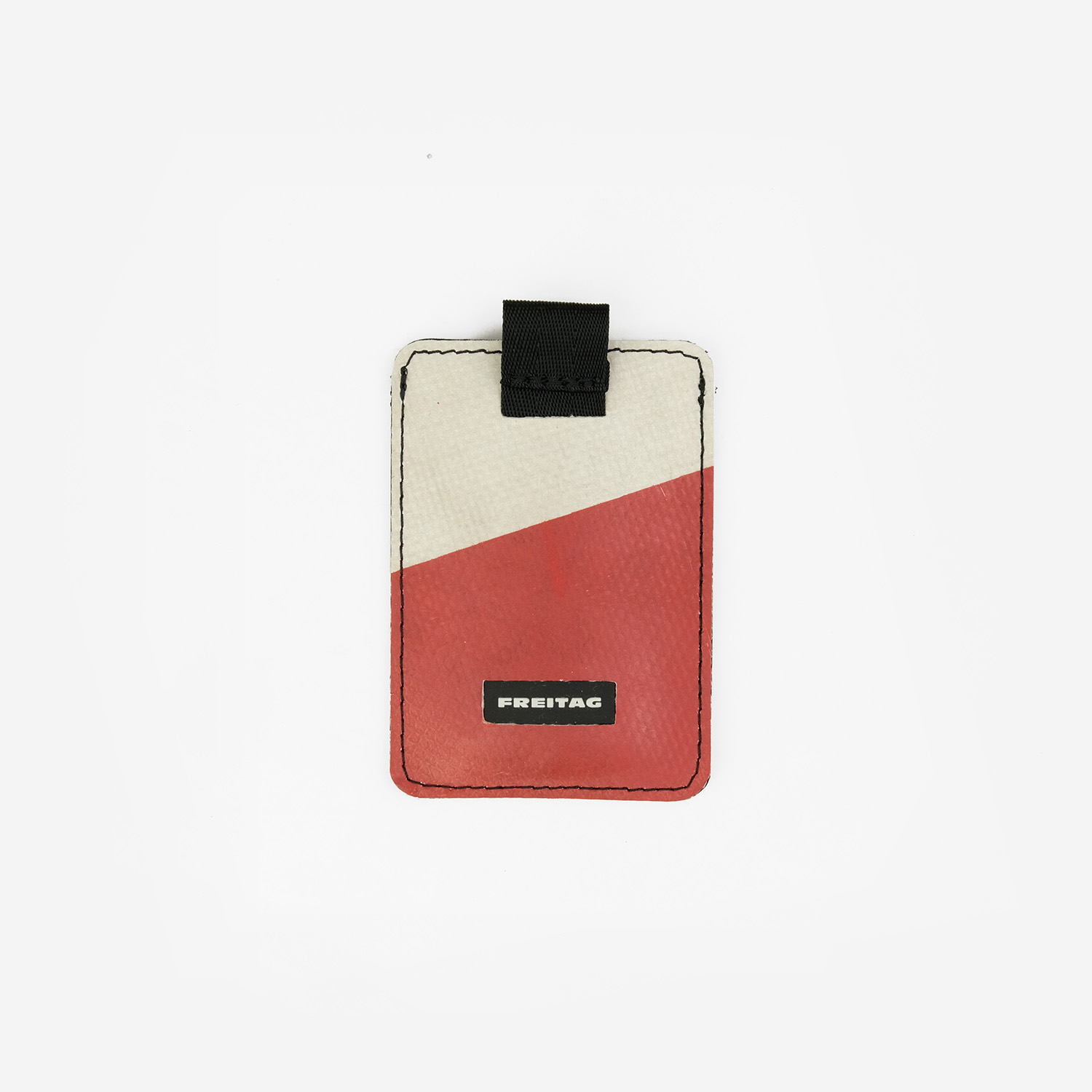 Falls du – just in case – zu deinem iPhone® doch noch eine Kreditkarte oder einen Ausweis brauchst: Das schlanke Kartenetui aus gebrauchter LKW-Plane mit der für FREITAG typischen Reisslasche.