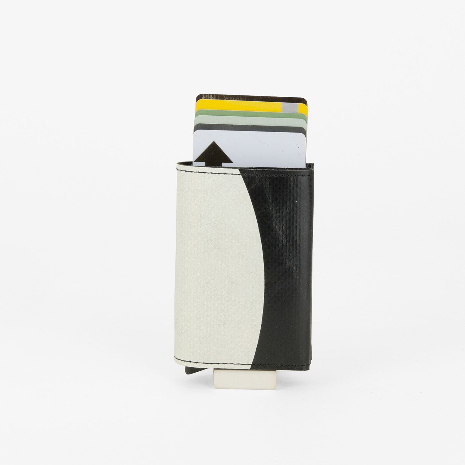 Made from used truck tarp and an upcycled aluminum card protector
