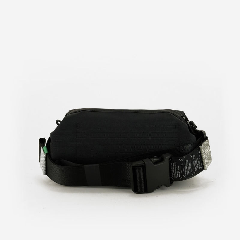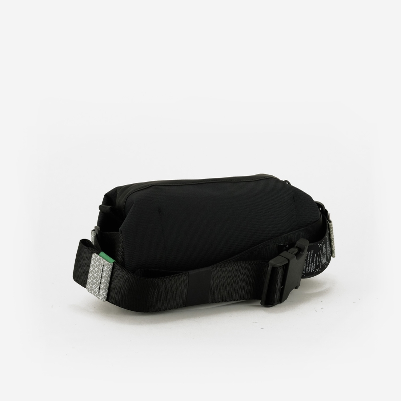 The adjustable shoulder strap is machined from a piece of B-series seat belt.