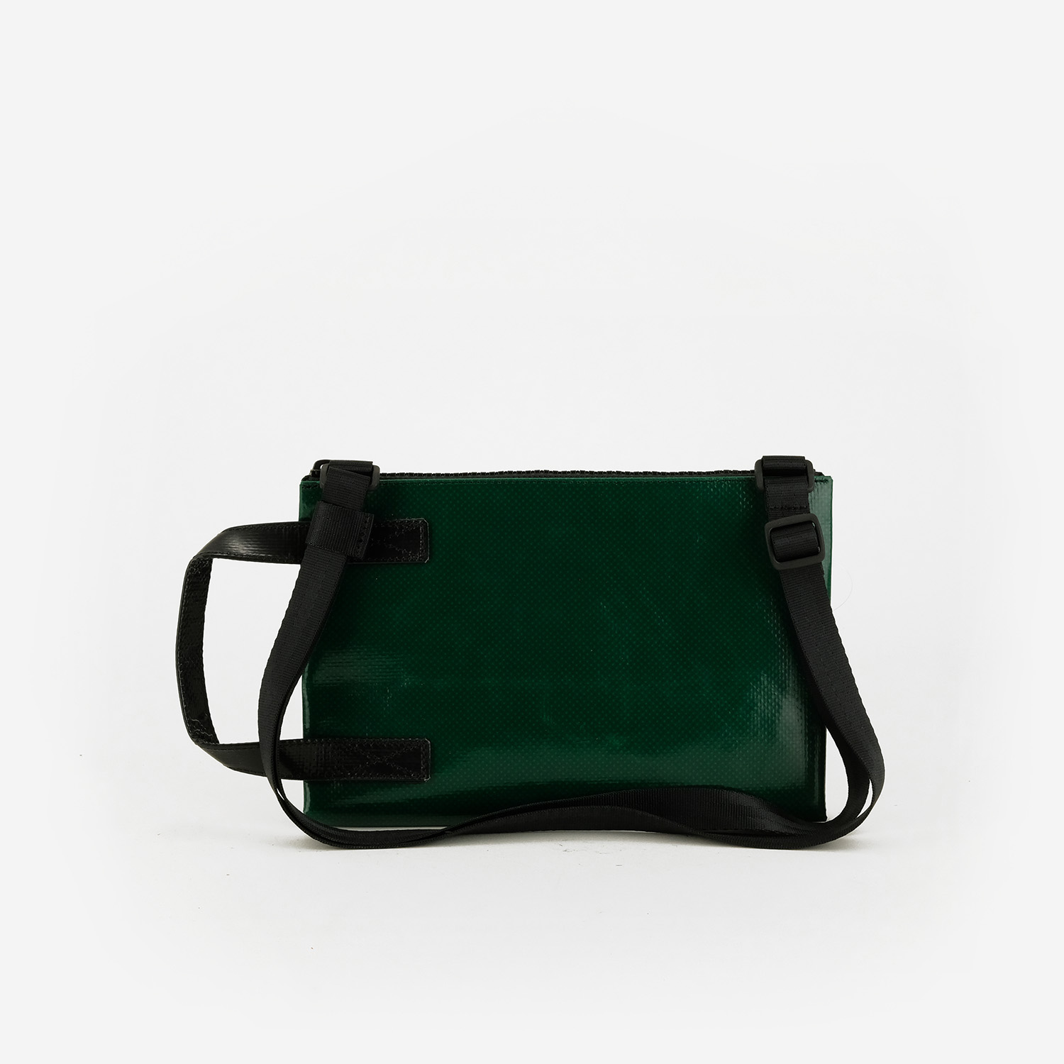 The small, flat crossbody bag made from old truck tarps. With a grippy handle, secret pocket, and enough room for your everyday essentials.