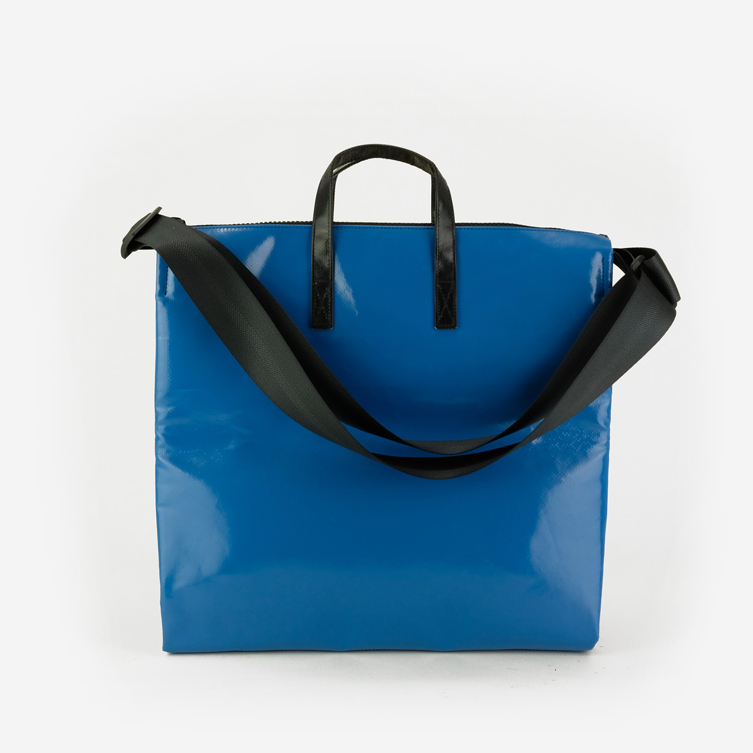 Made from used truck tarps, recycled PET bottles and repurposed seat belts.