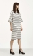 A striped dress made of heavyweight cotton jersey with a straight cut silhouette and knee-length hemline. Details include a snap closure along the left shoulder seam and wide sleeves to the elbow.