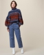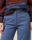 A-line Joan trousers in heavy double-weave gabardine with a peach-skin finish in places, woven in Italy. Sailor-style, with contrasting double top-stitching. Metal zip fly, button at the waistband. Italian pockets at the front with double topstitching. Patch pockets at the back with double top-stitching.
