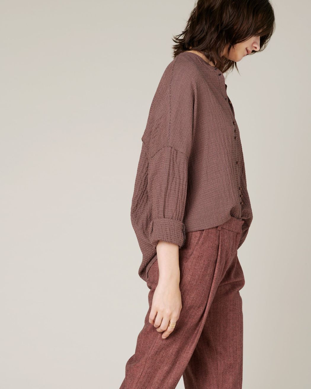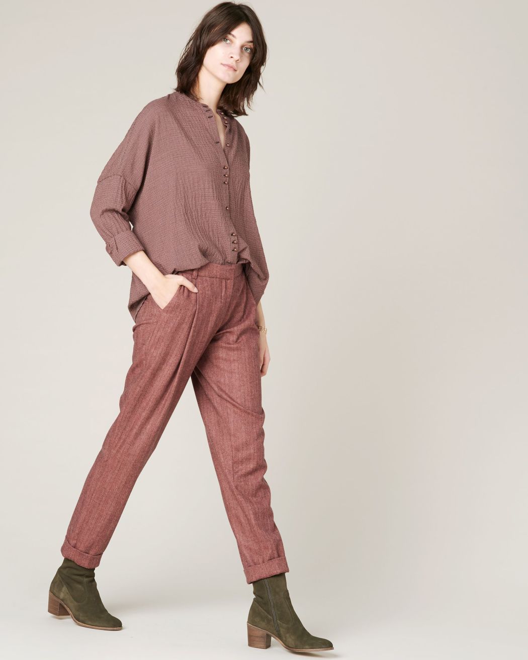 Nu Gaston trousers in herringbone flannel, woven in Italy. Loop and button fastening at the waist. Italian style pockets at the front, single piped pockets at the back. Zip fastening under placket.