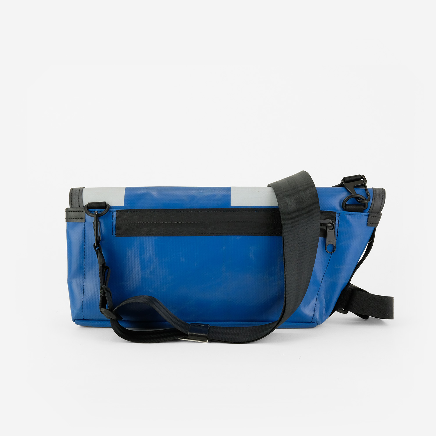 La borsa (up)cycling asimmetrica 2 in 1 valorizza la tua schiena come borsa a tracolla o dà un tocco in più al telaio quando fissata alla bici.