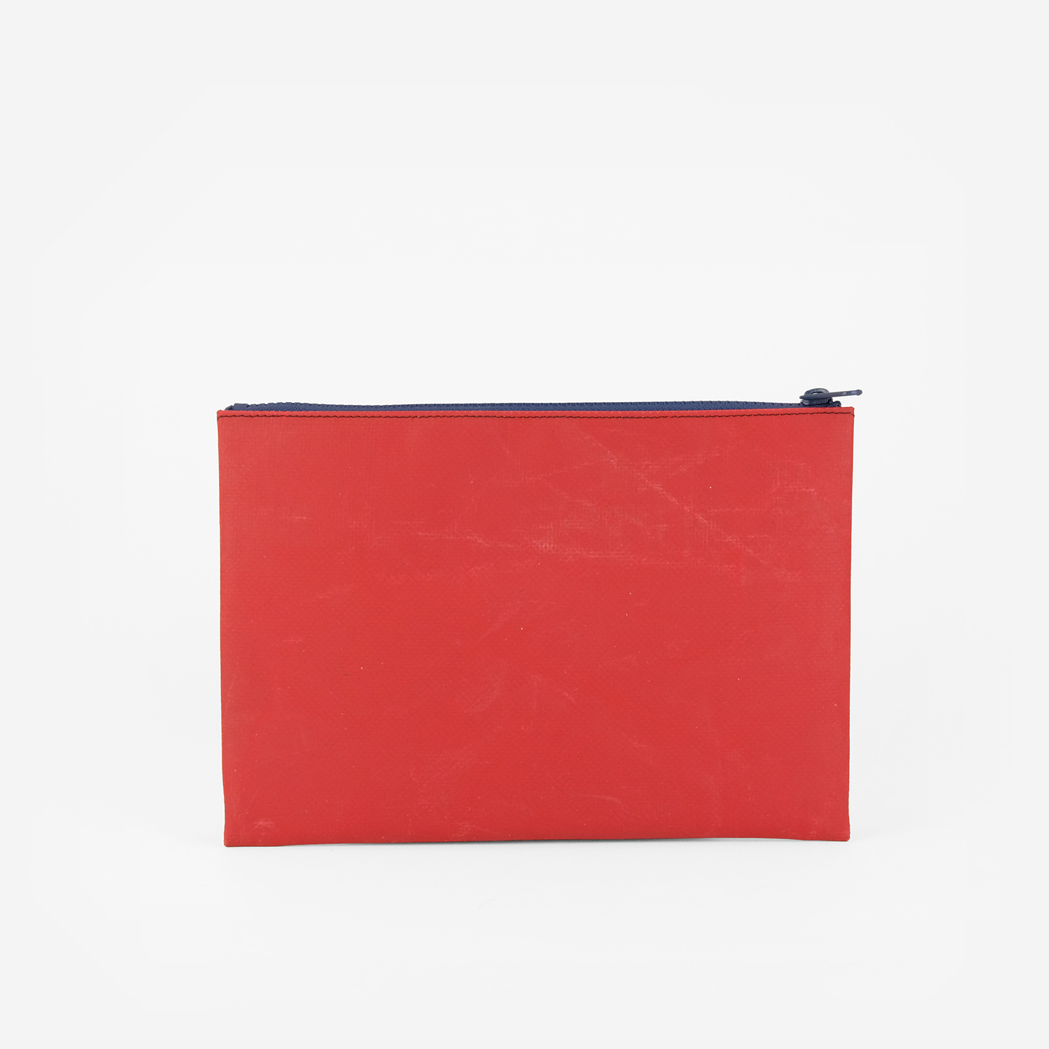 La graziosa e capiente pochette individuale riciclata formato A5, con cerniera colorata, perfetta per cartoline, carte da gioco, deodoranti, passaporti falsi e qualsiasi altra cosa sparsa nei cassetti più nascosti.